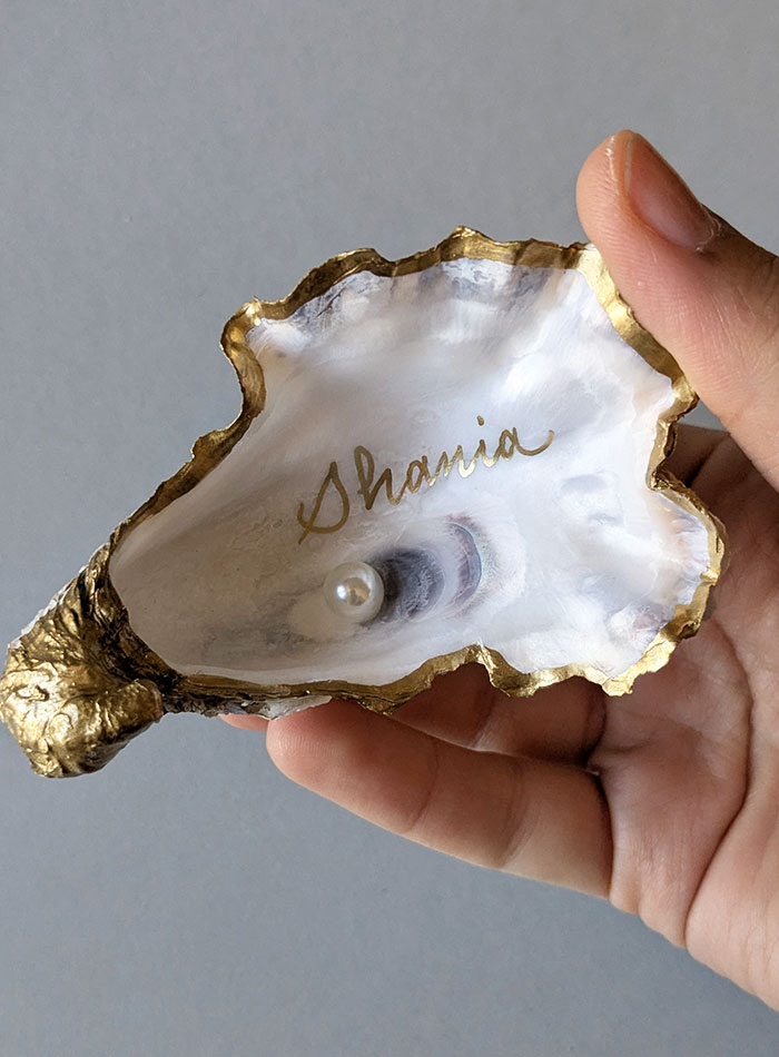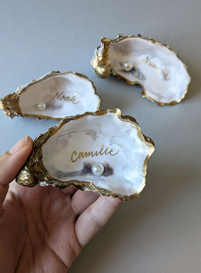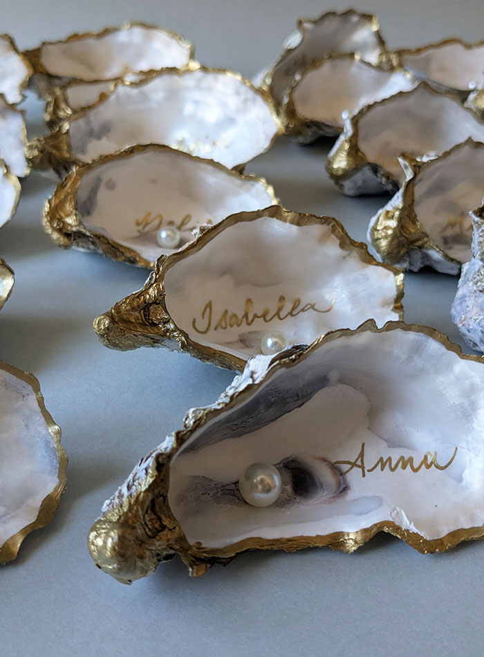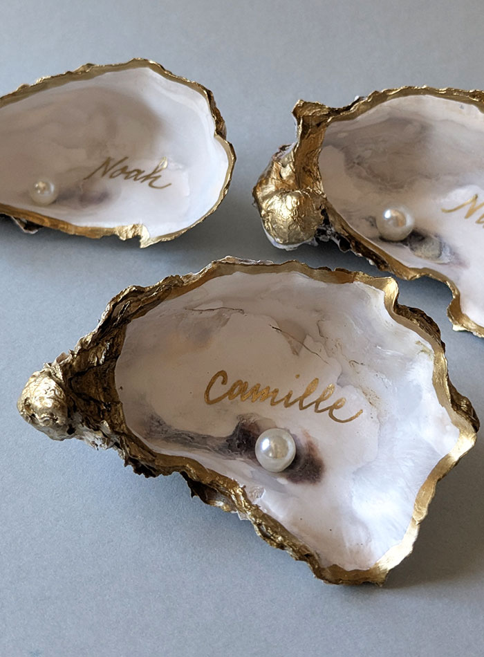 Calligraphie de marque-places sur huîtres